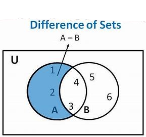 elements which are only in A but not in B. Hence, A−B={x|x∈A AND
